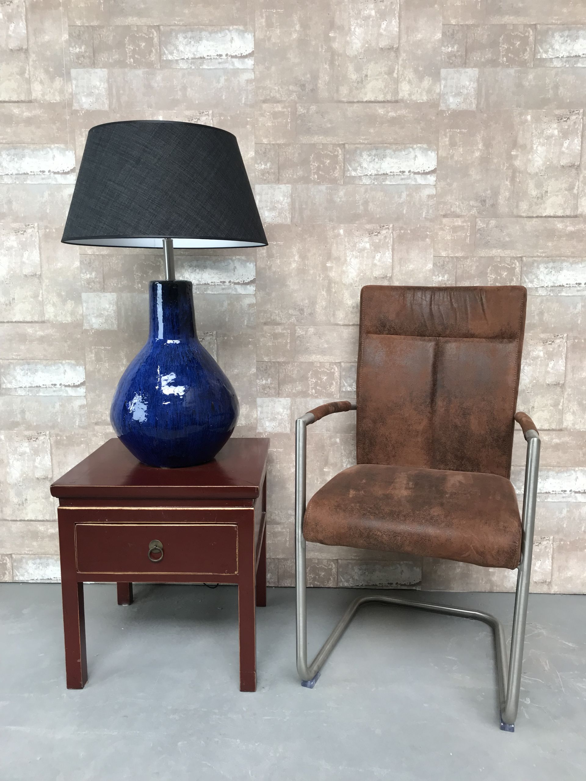 T021209 Tafellamp aardewerk blauw glazuur met antraciet linnen kap.