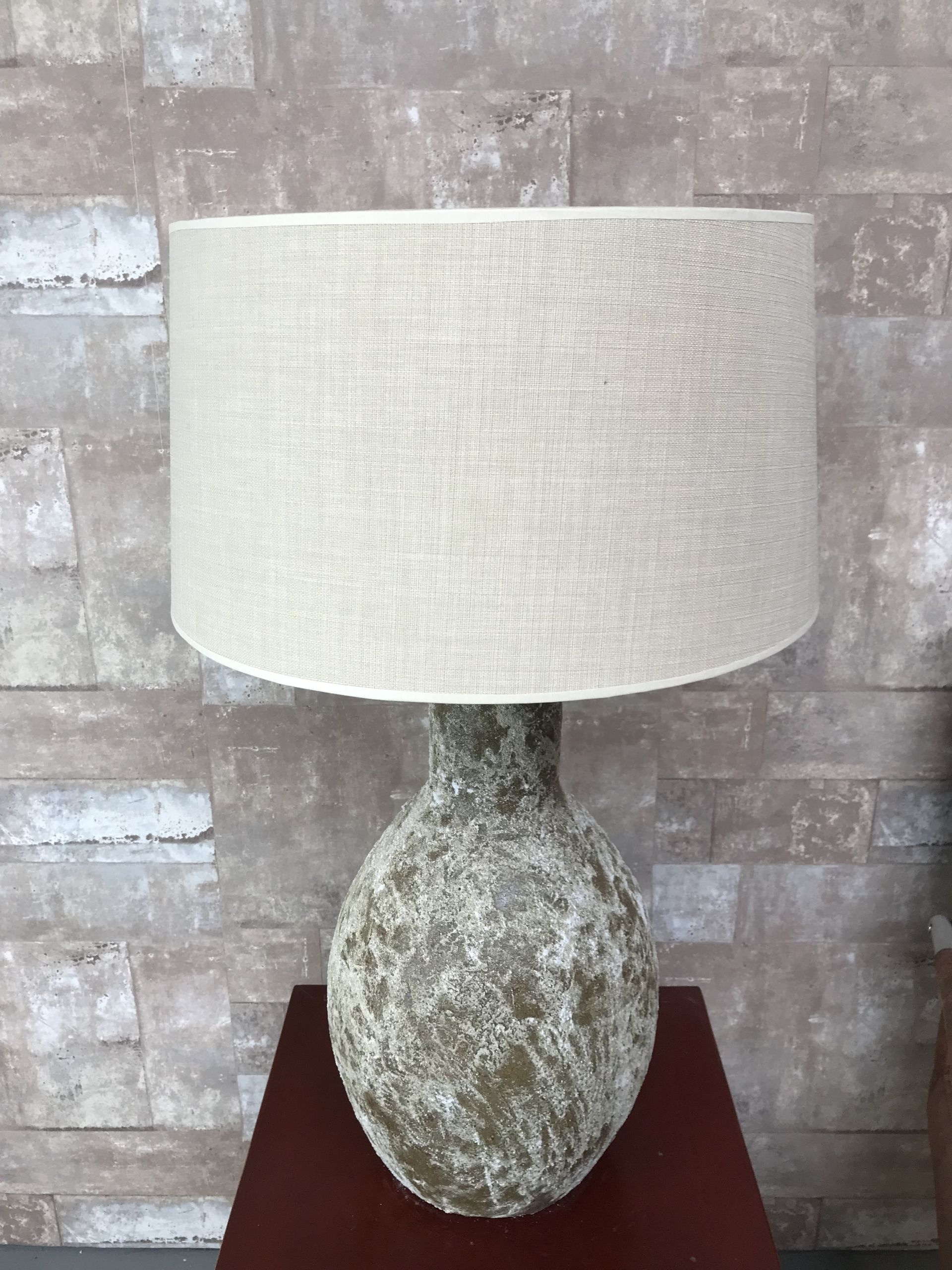 T017116 Tafellamp aardewerk atlantic met creme linnen kap.