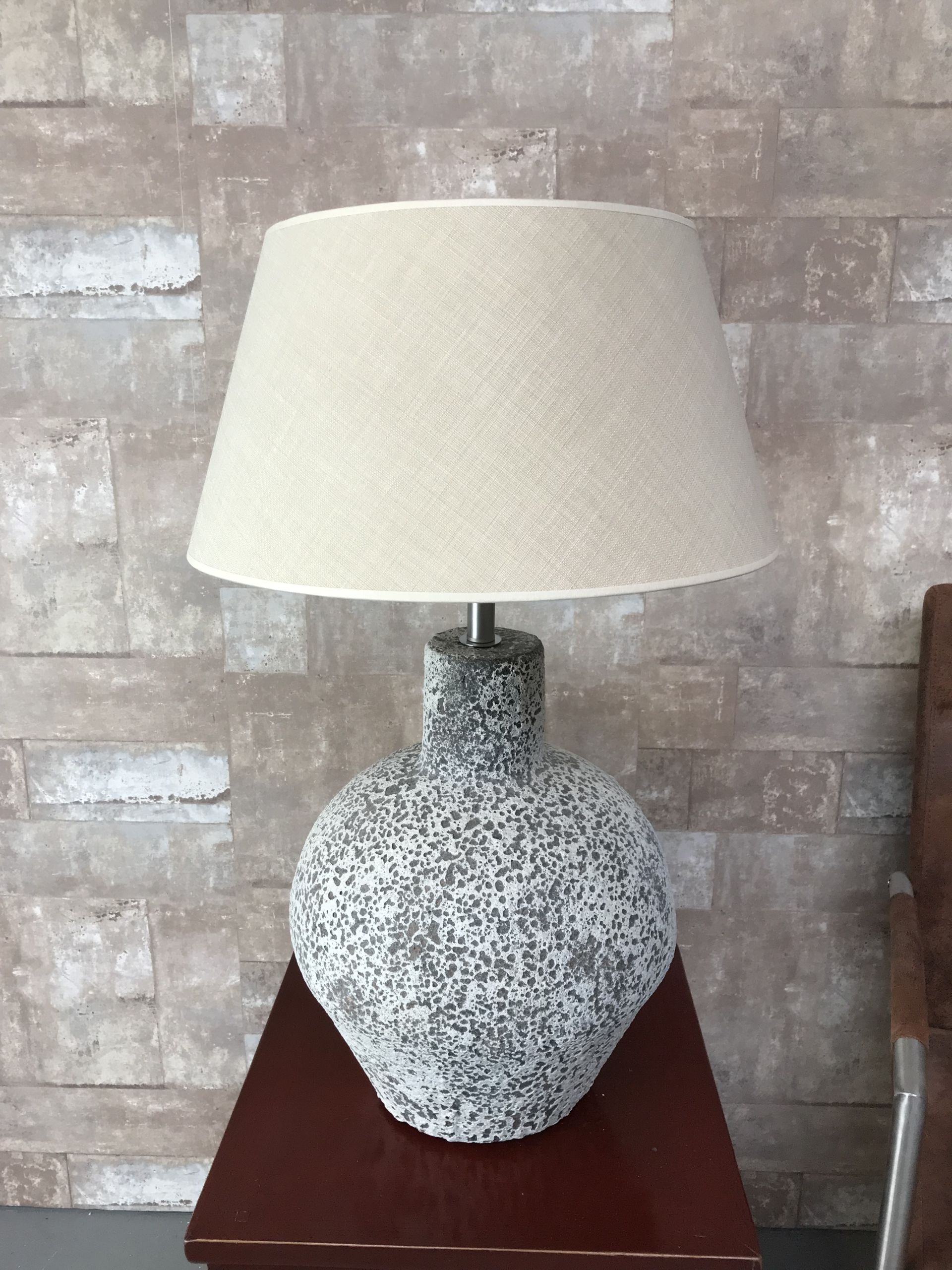 T037913 Tafellamp aardewerk ocean oxide met linnen kap.