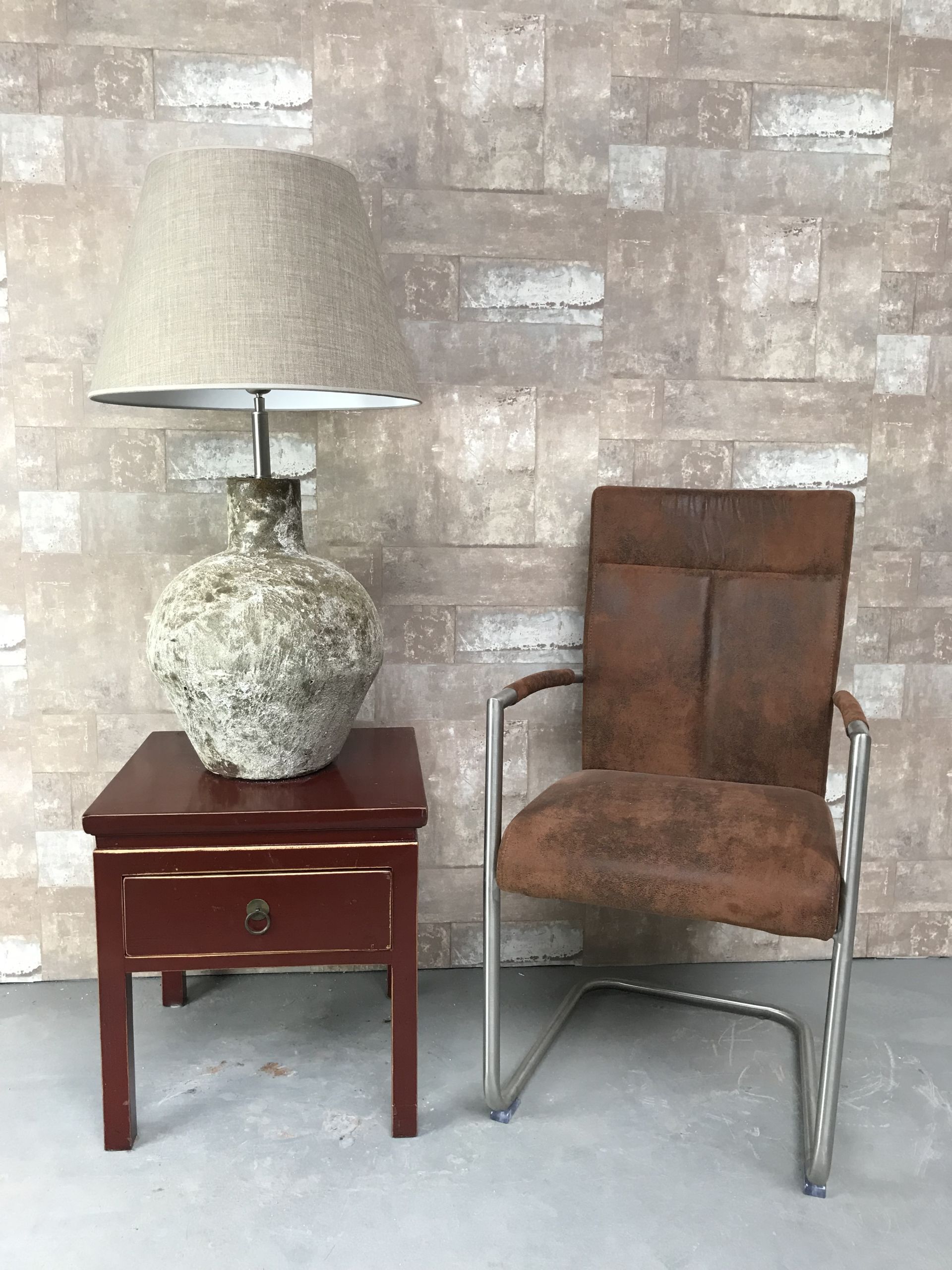 Devaso landelijke aardewerk tafellamp atlantic, deze is op primitieve en ambachtelijke wijze, door vakmensen hand vervaardigd aardewerk.