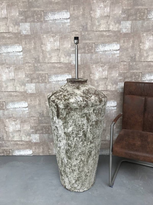 Vloerlamp op primitieve wijze, hand vervaardigd aardewerk.